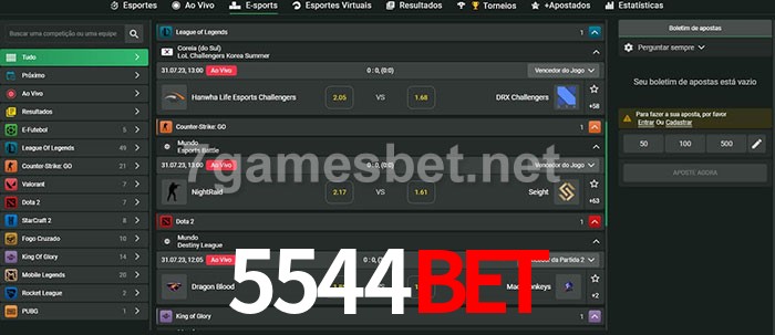O 5544Bet oferece uma grande seleção de opções de apostas em e-sports com probabilidades competitivas